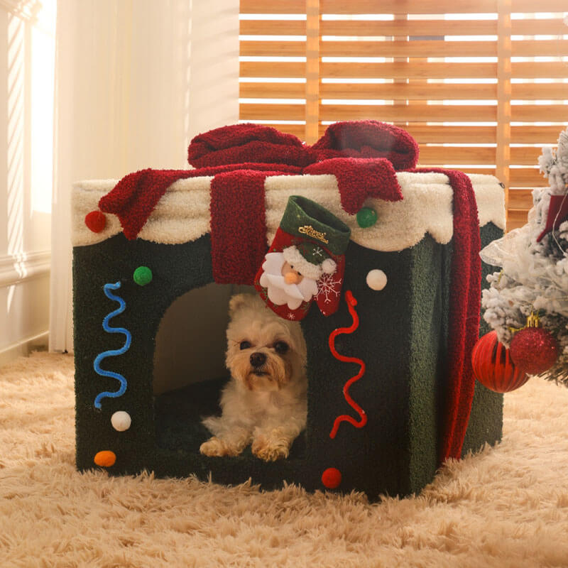Festive Snow House Orthopedic Dog Bed - Christmas Warmth