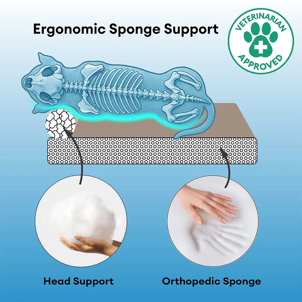 • Orthopedic Support with Pillow: Filled with high-resilience sponge, this mat gently supports joints and muscles, making it ideal for senior pets, small breeds, or those recovering from injury. The matching pillow provides added neck and head support, turning every nap into a rejuvenating rest.