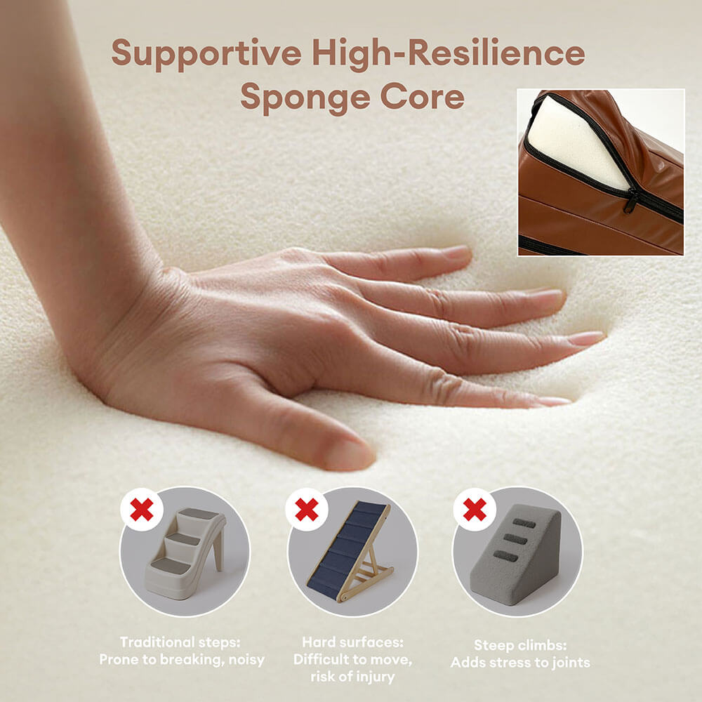 • Supportive & Joint-Friendly High-Density Sponge: Filled with thick, high-resilience sponge, each step offers sturdy support without sagging—making it perfect for small pets, seniors, or recovering pups.