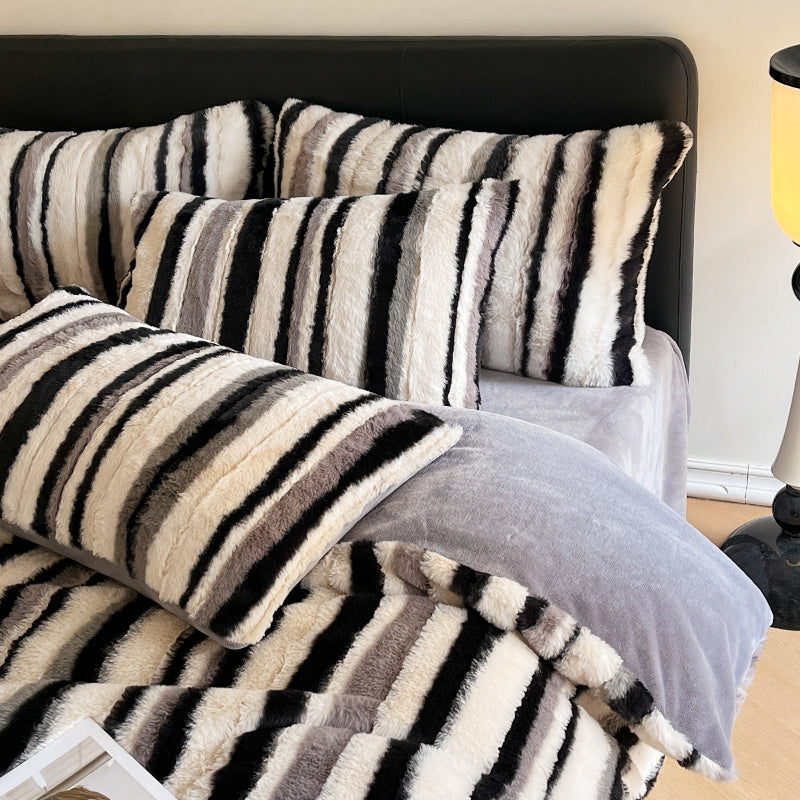 Ensemble de draps antistatiques en fausse fourrure de lapin, rayé ombré irrégulier, chaud et épais