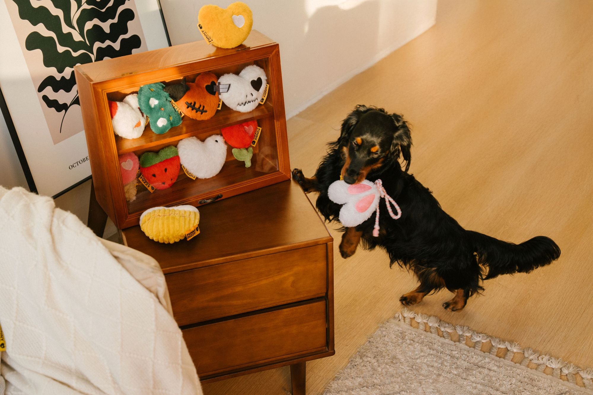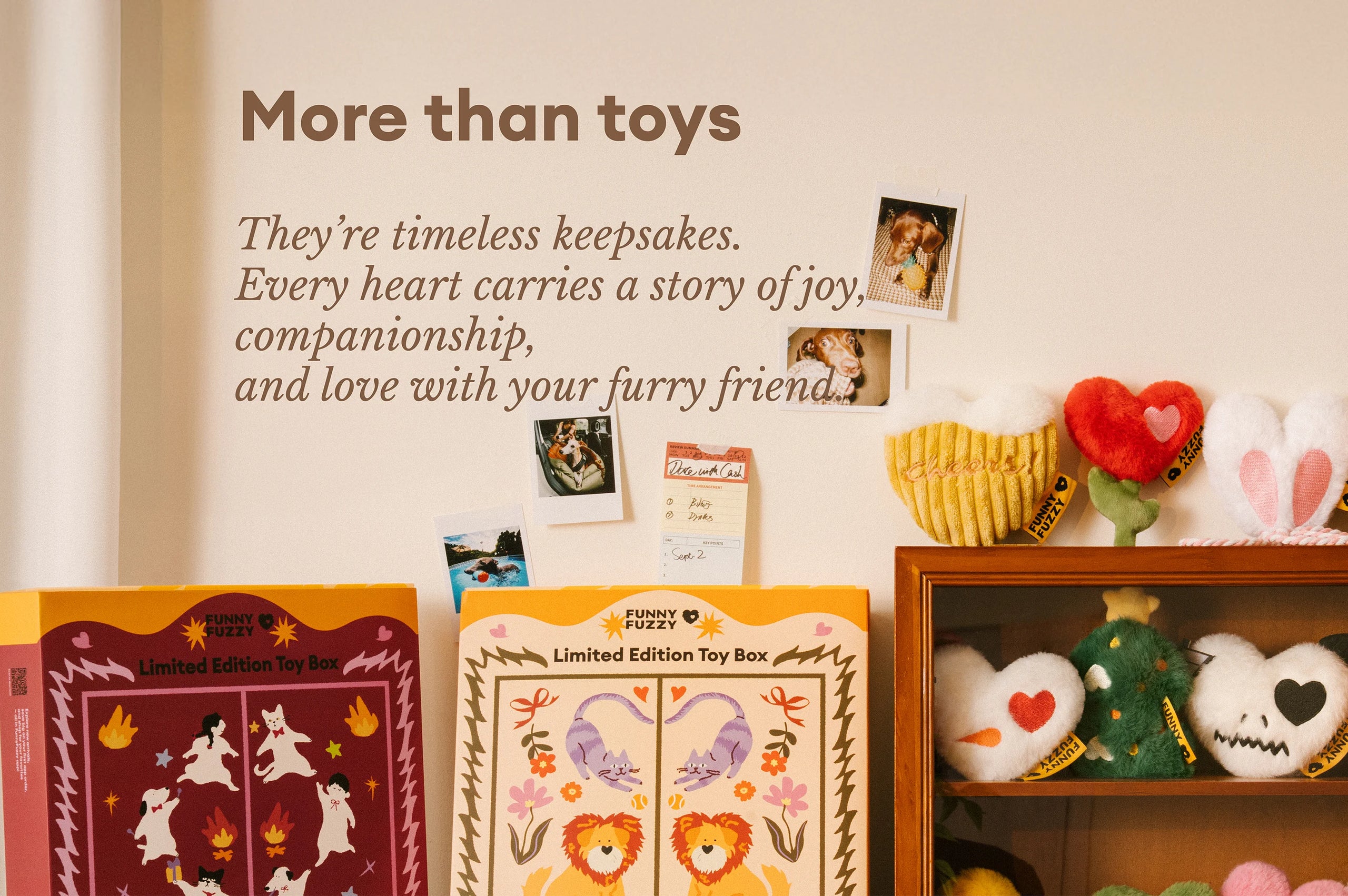 This sketch came from our designer Emily and her dog Max. Last autumn, Max wouldn’t let go of a fluffy heart toy — he carried it through the whole night. For Emily, that little plush became more than a toy… it became a memory.