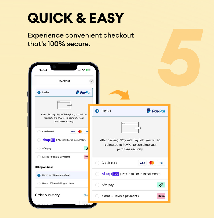 Visa Mastercard American Express Discover Diners Club Bancontact Venmo Shop Pay PayPal Apple Pay Google Pay Meta Pay Klarna Afterpay