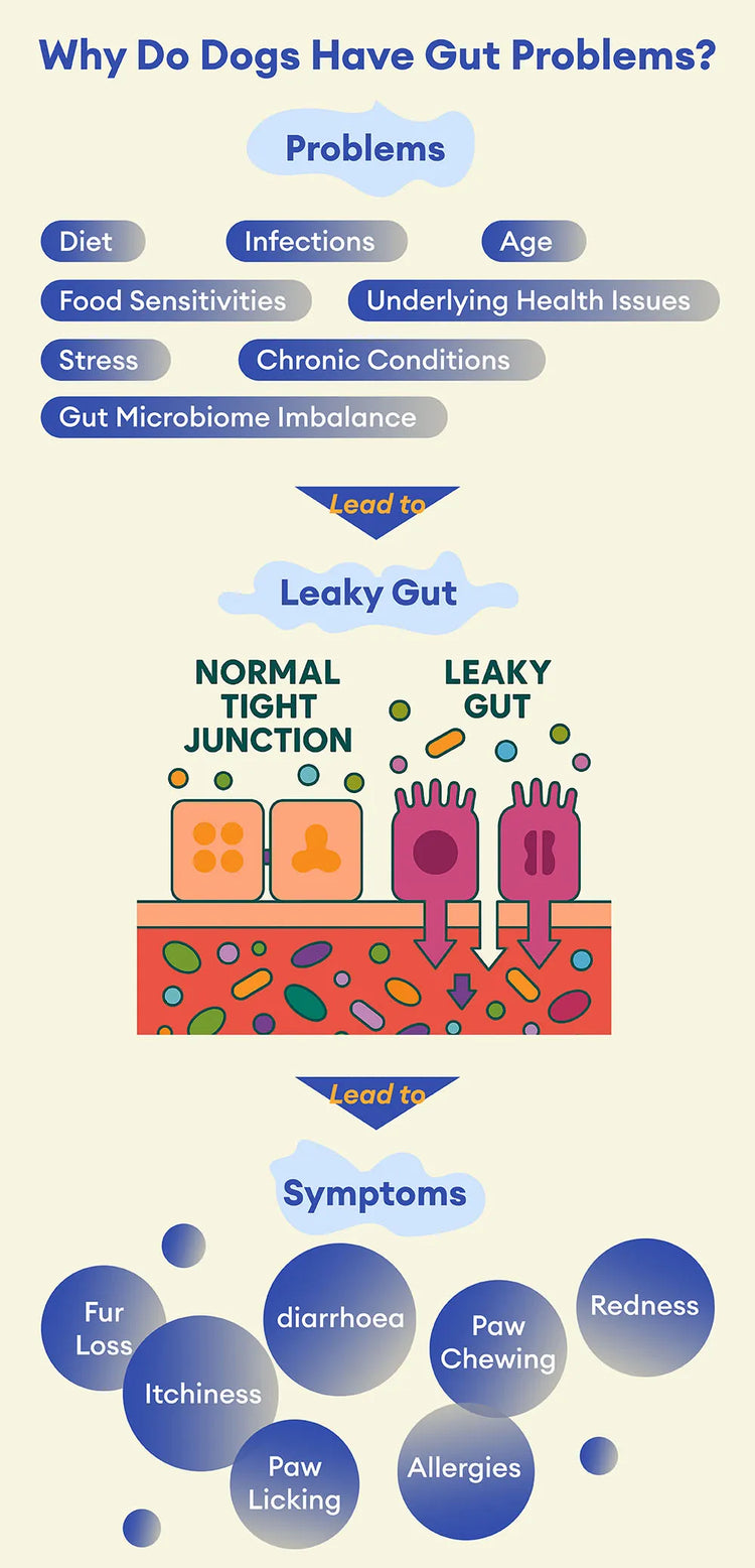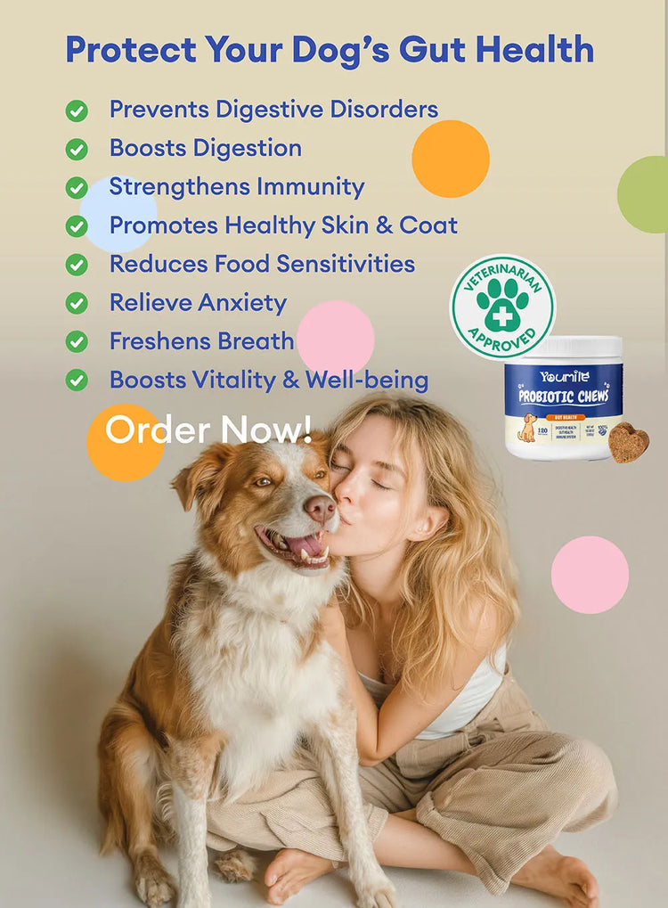 Probiotics are live, beneficial bacteria that support normal digestive function and help maintain a healthy gut and immune system. Daily supplementation can promote regular bowel movements, ease occasional loose stools, and may even support dogs experiencing seasonal allergy-related discomfort.