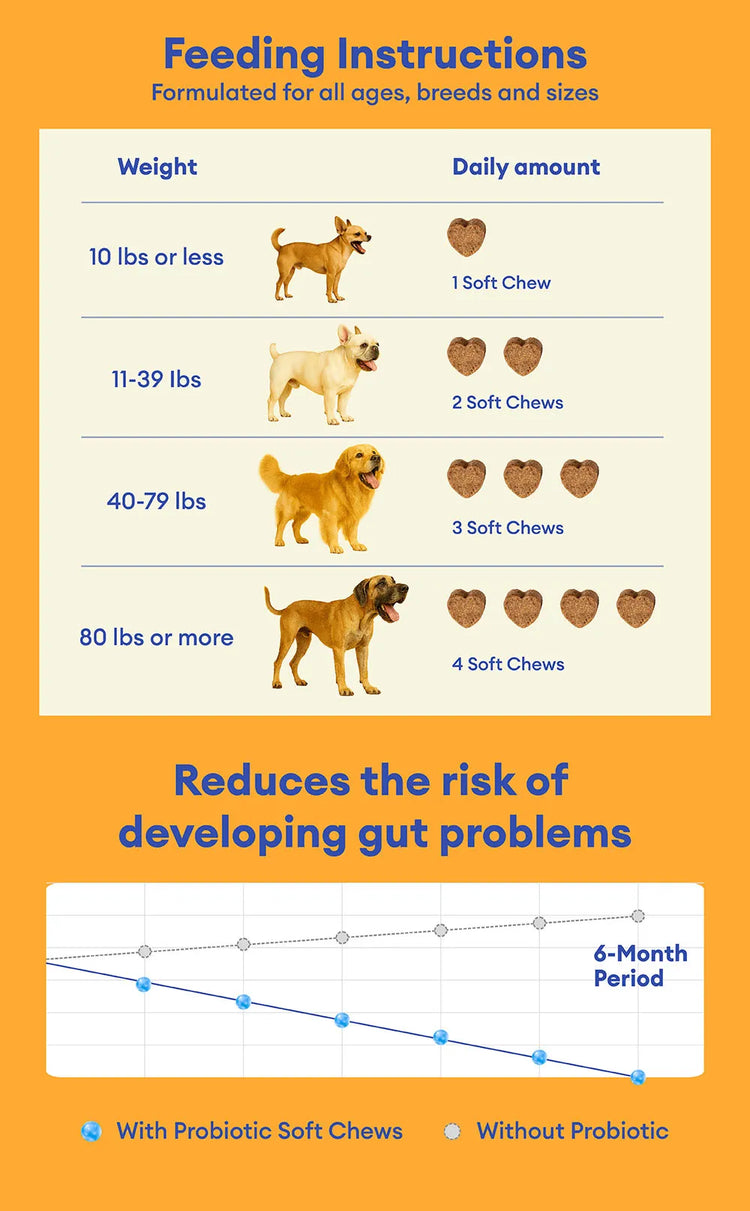 Probiotic Soft Chews for Dogs (120 Count) | Digestive Health & Immune Boost
