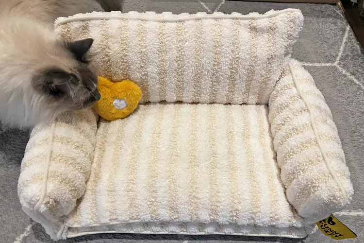Funny Fuzzy Cat Sofa Bed Review 2024: Our Expert’s Opinion - Trendy Striped Faux Lambswool Double Layer Dog & Cat Sofa Bed - 08/02/2024