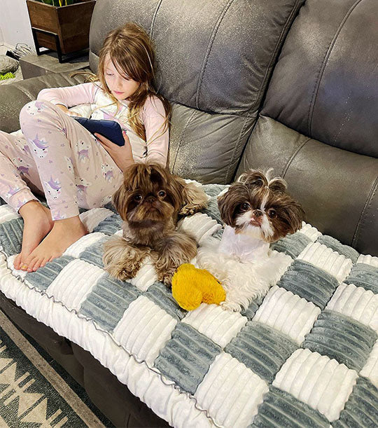 Our soft and creamy colourways and pattern allows for this pet accessory to aesthetically blend with any home decors. Help your furniture floors or couch surface from scratch or stains while ensuring you and your pets' cosiness.