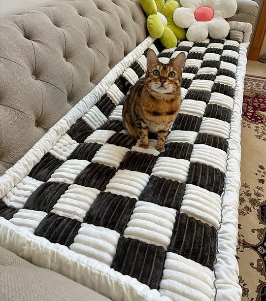 Cream Square Plaid Cozy Dog Mat Furniture Protector Cover