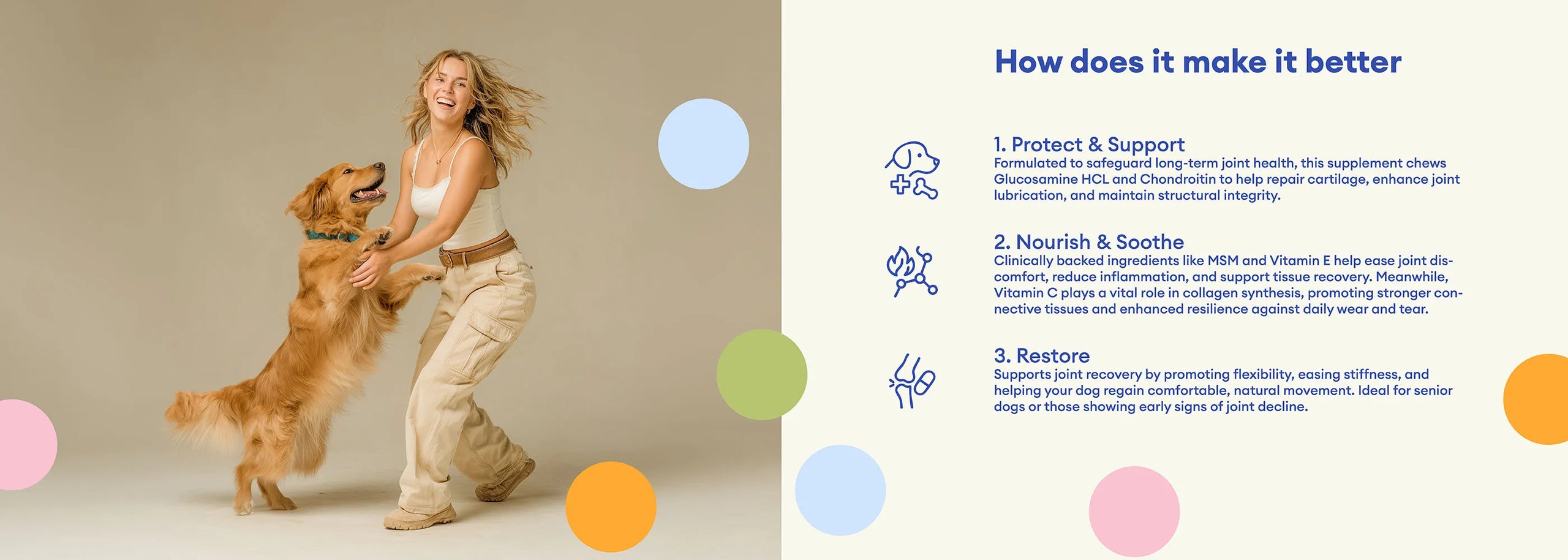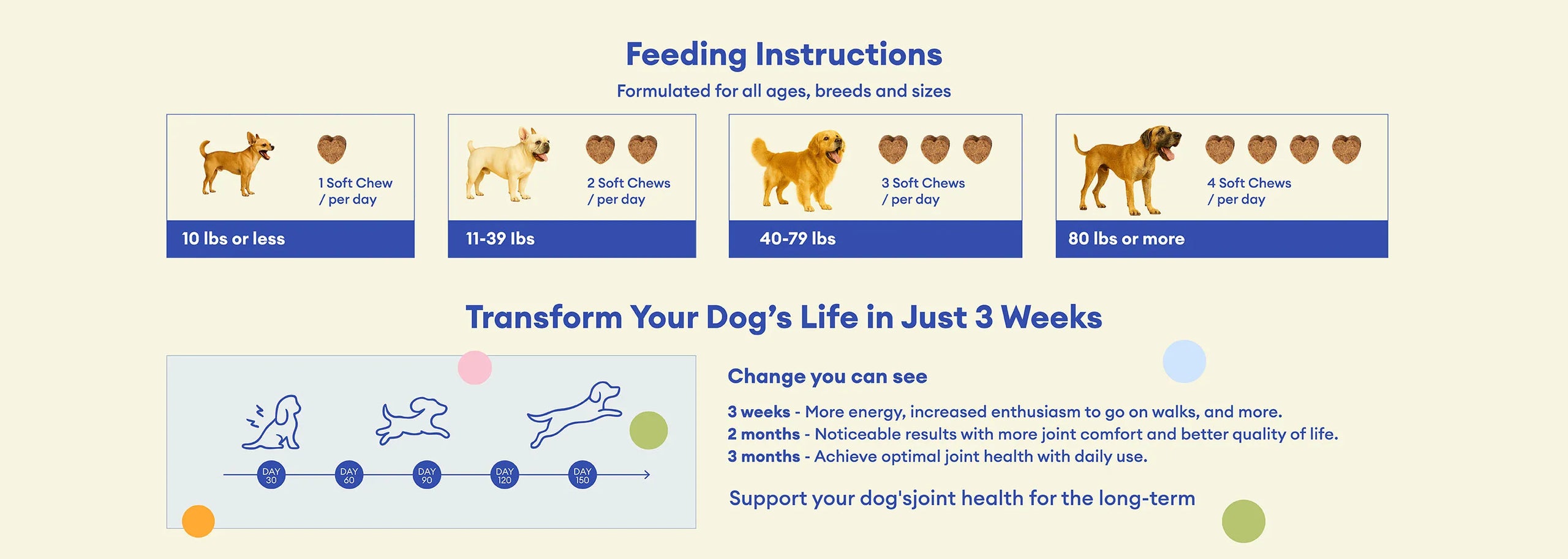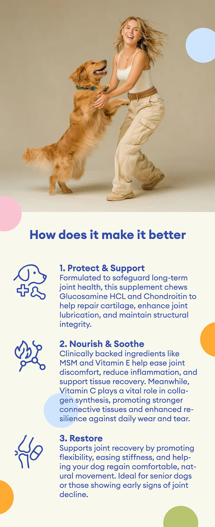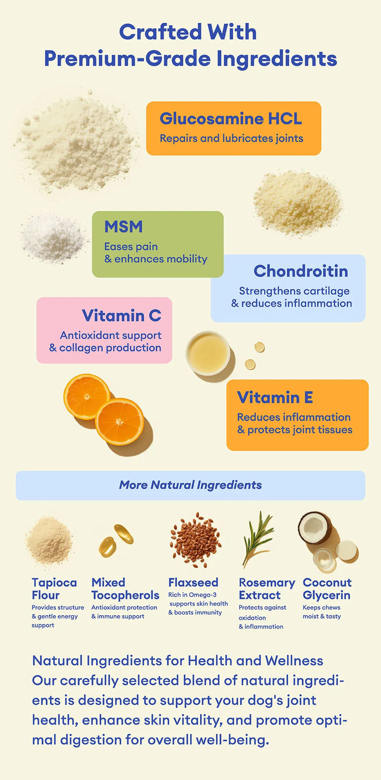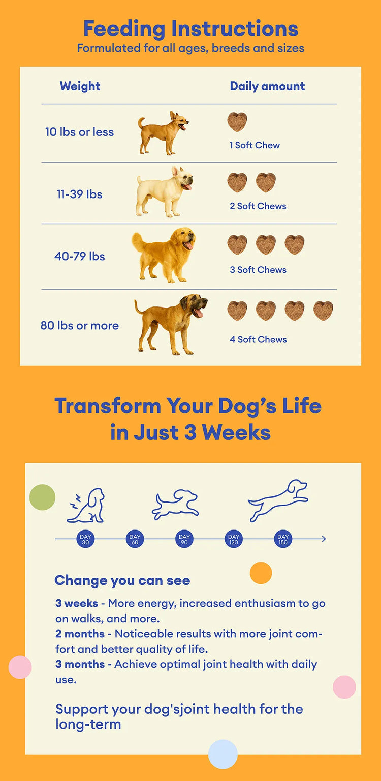 Ideal for All Dog Ages & Sizes: Whether you're caring for a young, active dog that needs support after play or an older dog with arthritis, these chews are designed to promote long-term joint health and comfort for dogs of all ages.