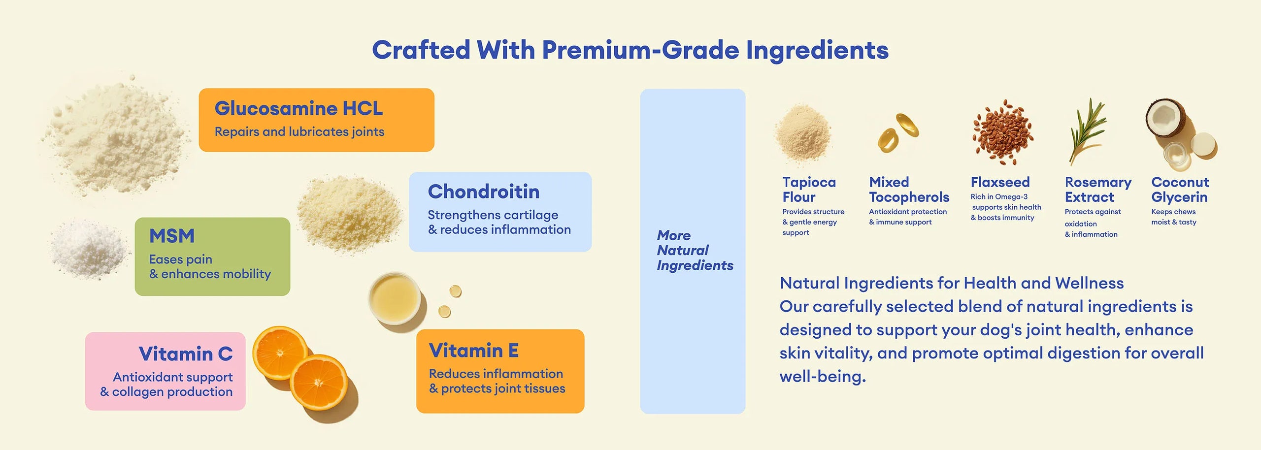 Natural, Safe, & Effective Formula: Made with natural ingredients, these chews are free from artificial additives, ensuring that your dog receives safe, high-quality care for their joint health.