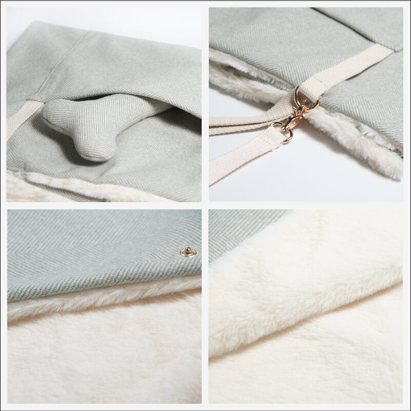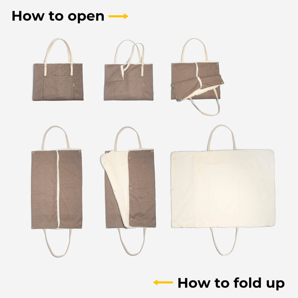 No matter you bring your pup for a small trip, or just hang out at the cafe, they can have a nice mat to sit or lay on, which protects your dog from the cold ground. It offers comfort just like at home. Our portable mat can be transformed into a carry bag, making it easier to carry with you. A side pocket perfect for treats. It is extra soft and comfortable, ideal for excursions, camping, etc.