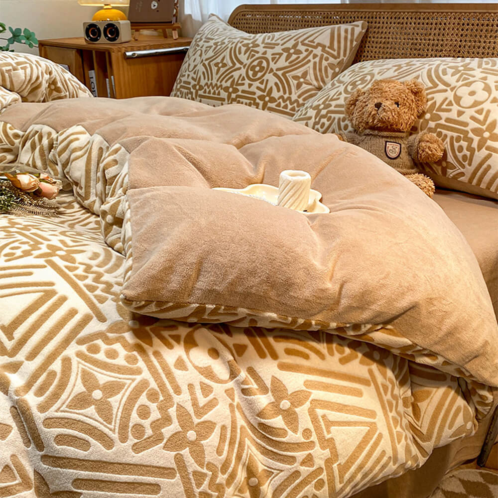 Classic Geometric Soft Anti-Static Warm Milk Velvet Bed Sheet Set