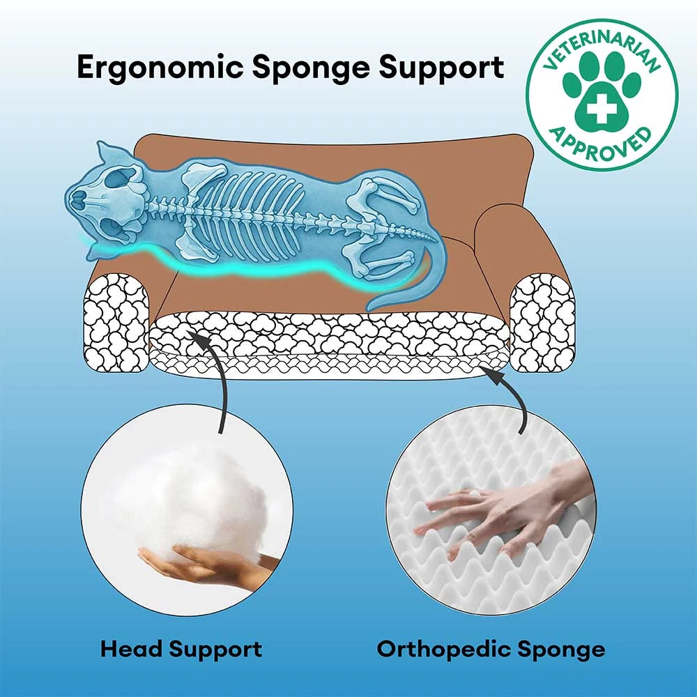 Orthopedic Dual-Layer Support: Designed with an egg-crate sponge base and dense PP cotton filling, this bed cushions joints and muscles, making it perfect for senior pets, small breeds, or dogs recovering from injury. Raised bolsters along the sides provide extra head and neck support for secure, restorative rest.