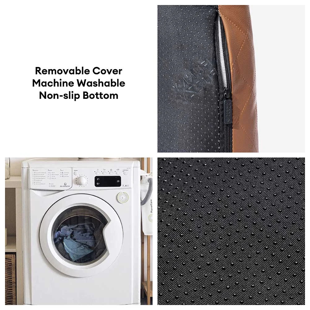 Removable & Machine-Washable Cover: The zip-off design makes cleaning simple—toss the cover in the wash or wipe the faux leather for quick refreshes after muddy paws or shedding.