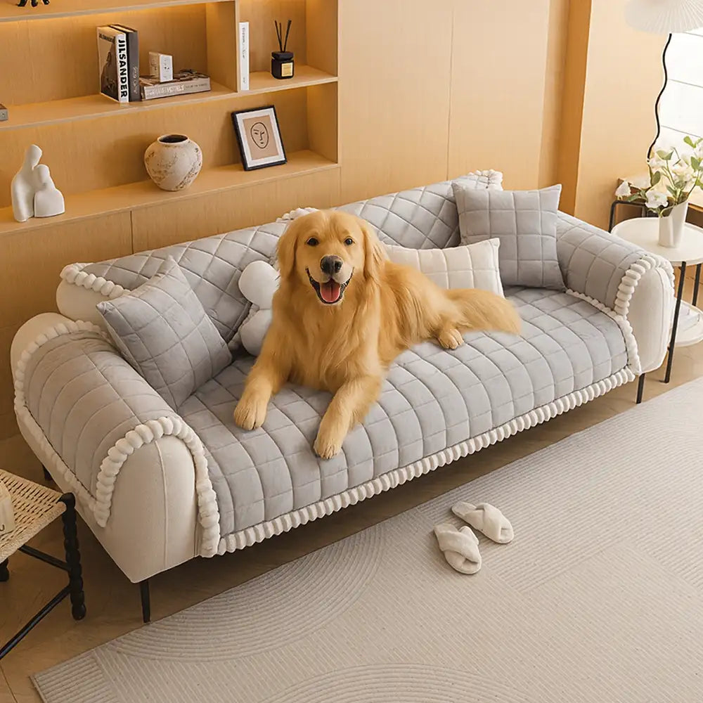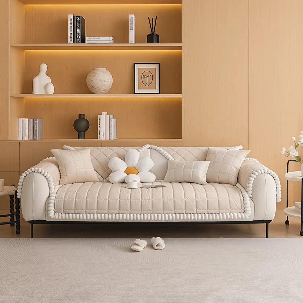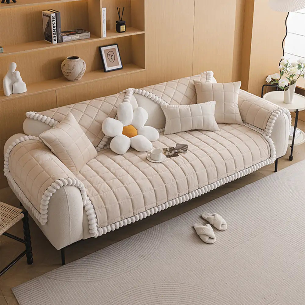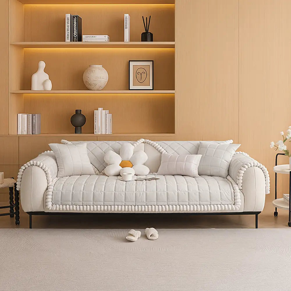 Designed with pets, kids, or simply a love for cozy interiors, this couch cover features a short plush quilted design that not only enhances your sofa’s look but also shields it from scratches, spills, and daily wear. With its non-slip backing, it stays firmly in place, giving you peace of mind even in the busiest homes.